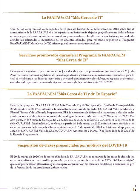 45 AÑO S tr a b a j ando “ P or us t e des , con us t e des y p ar a us t e des ”