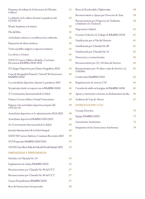Directivo de la FAAPAUAEM Apoyo a docentes jubilados y en trámite 32 Las actividades deportivas durante la pandemia 2021 46 Regularización de nómina CAF 65
