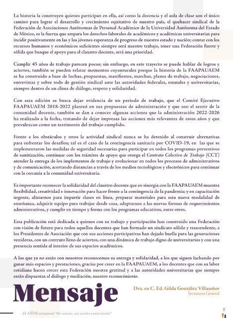 Ed. Gilda González Villaseñor. entrevistas y sobre todo de gestión sindical ante las autoridades federales, estatales y universitarias,